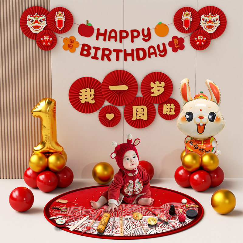 周岁生日布置儿童气球装饰场景男孩女孩宝宝抓周礼背景墙装饰品