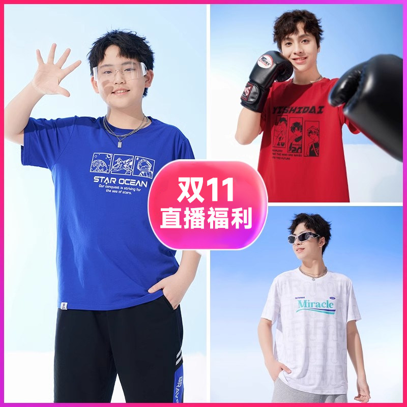 【双11专享反季福利】奕时代胖孩子男大童加肥加大码棉短袖T恤夏