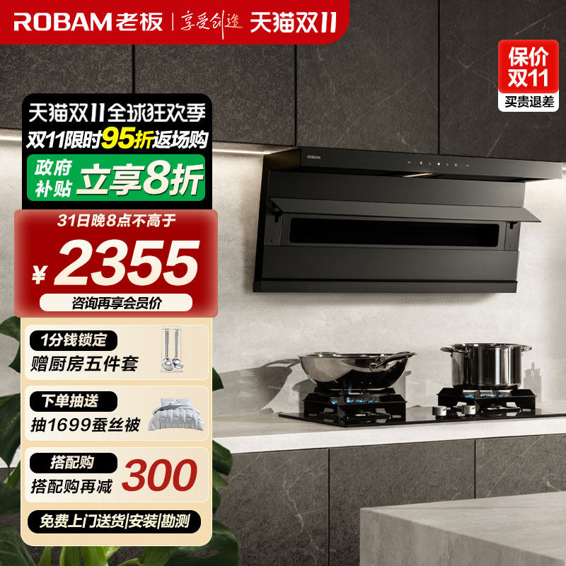【国补8折】老板小黑翼D1P油烟机超薄顶侧双吸26m³油烟机官方
