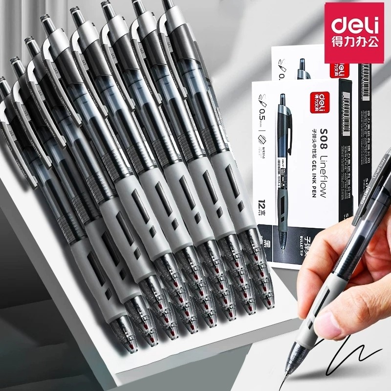 首页 > 未分类 > 得力笔按动中性笔黑色s08学生考试专用笔直液写字按压式碳素老师红笔大容量签字水性笔芯蓝色圆珠速干刷题笔