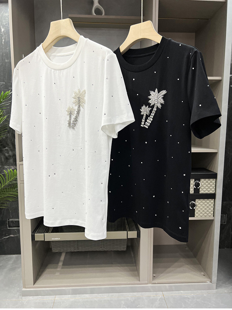 Q货!姐妹们苾入!重工烫钻钉珠高支棉短袖T恤上衣女 95072