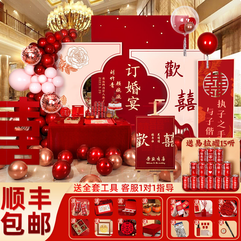 订婚宴布置装饰场景结婚摆件背景墙定制kt板全套摆台套餐用品大全