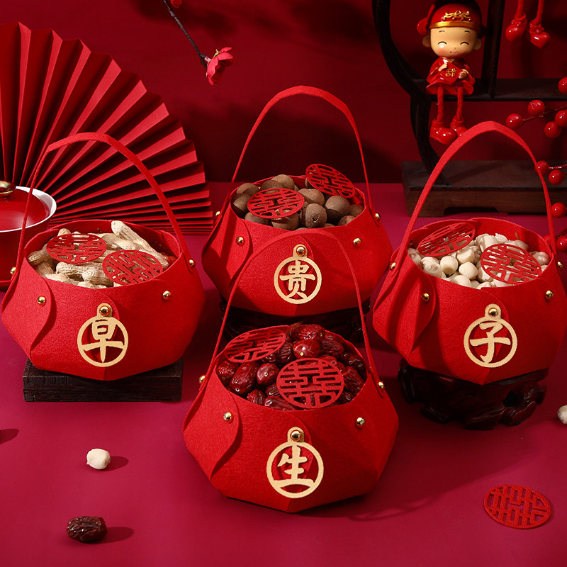 早生贵子提篮模具压床摆件婚床上摆设订婚宴干果盒结婚用品大全