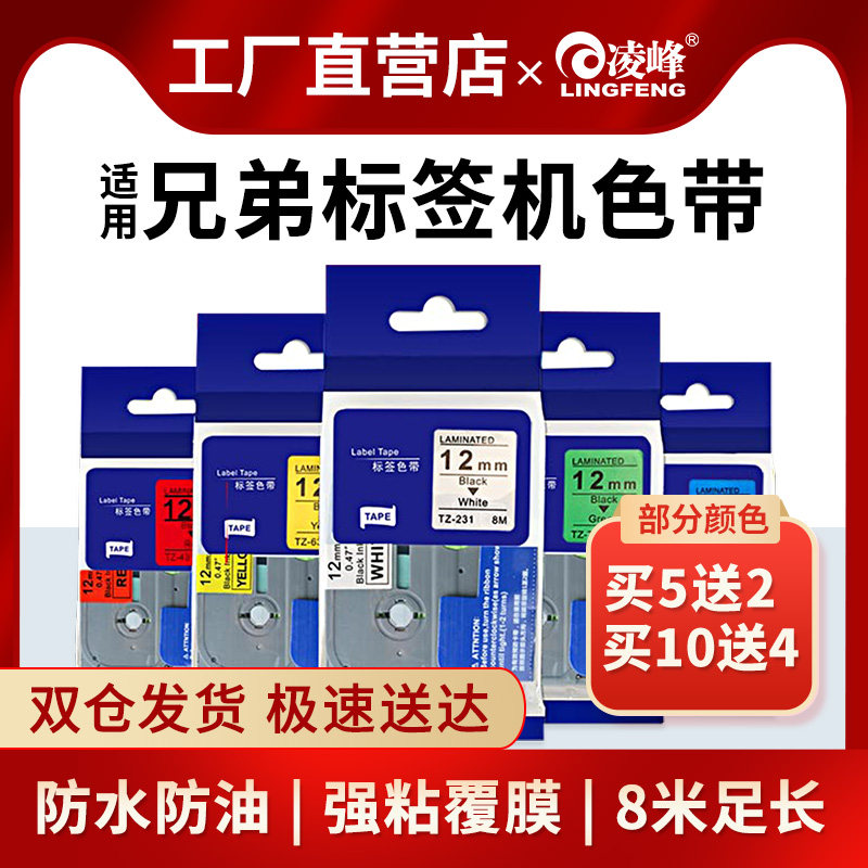 凌峰适用兄弟标签机色带12mm6 9 18 36mmTZe-231 631PT-D210/E115 p300bt打印纸标签带纸brother打印纸标签带