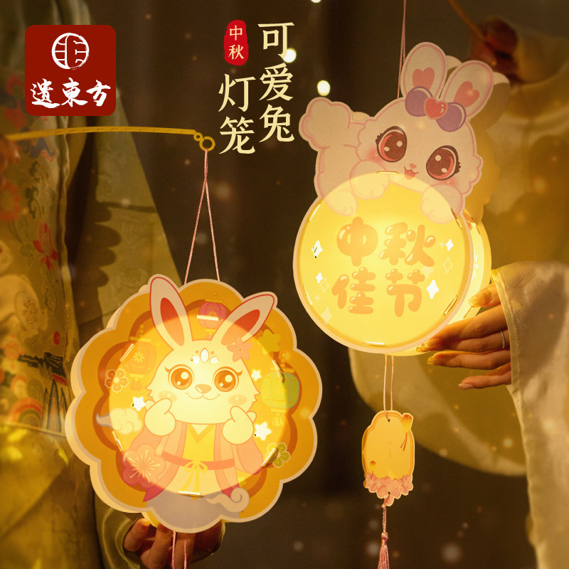 - 中秋节手工diy可爱兔灯笼材料包儿童古风制作非遗手提玉兔子花灯