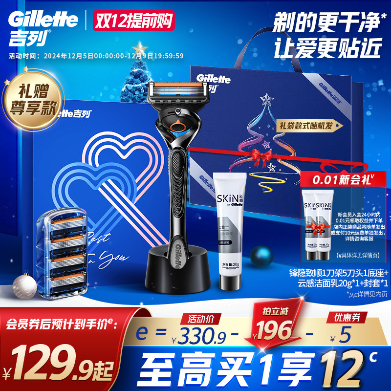 吉列锋隐致顺5层手动剃须刀非吉利男士5层刀片刮胡刀送男友礼盒款