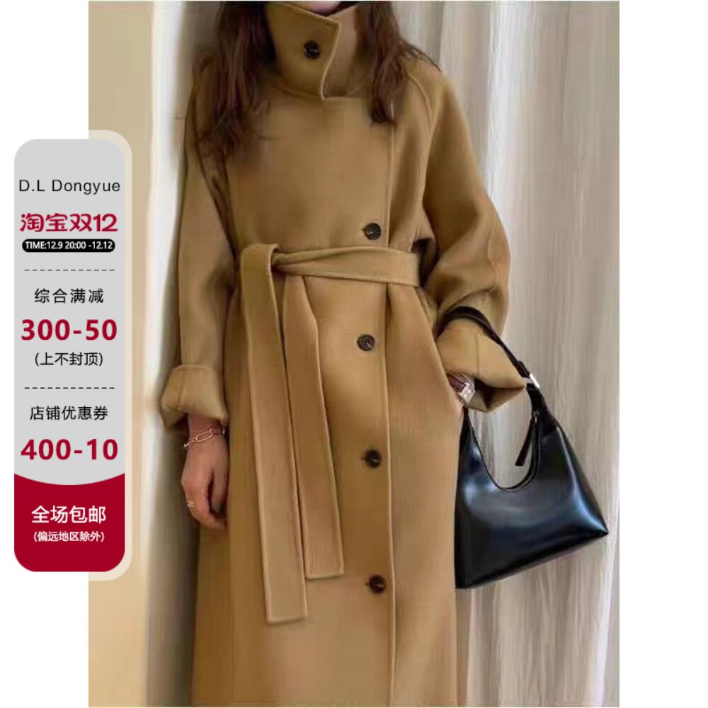 清仓反季2024洋气小姐姐手缝双面羊绒大衣女中长款设计感羊毛外套