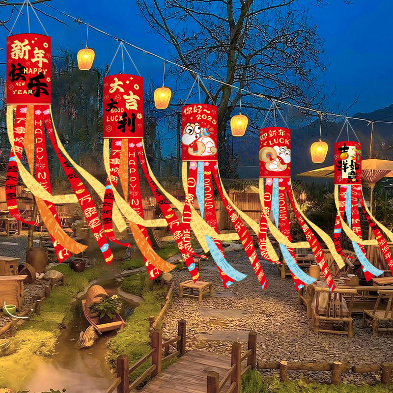 首页 > 未分类 > 2025蛇年新年户外风筒旗装饰元旦春节吊旗国潮场景挂旗氛围彩旗