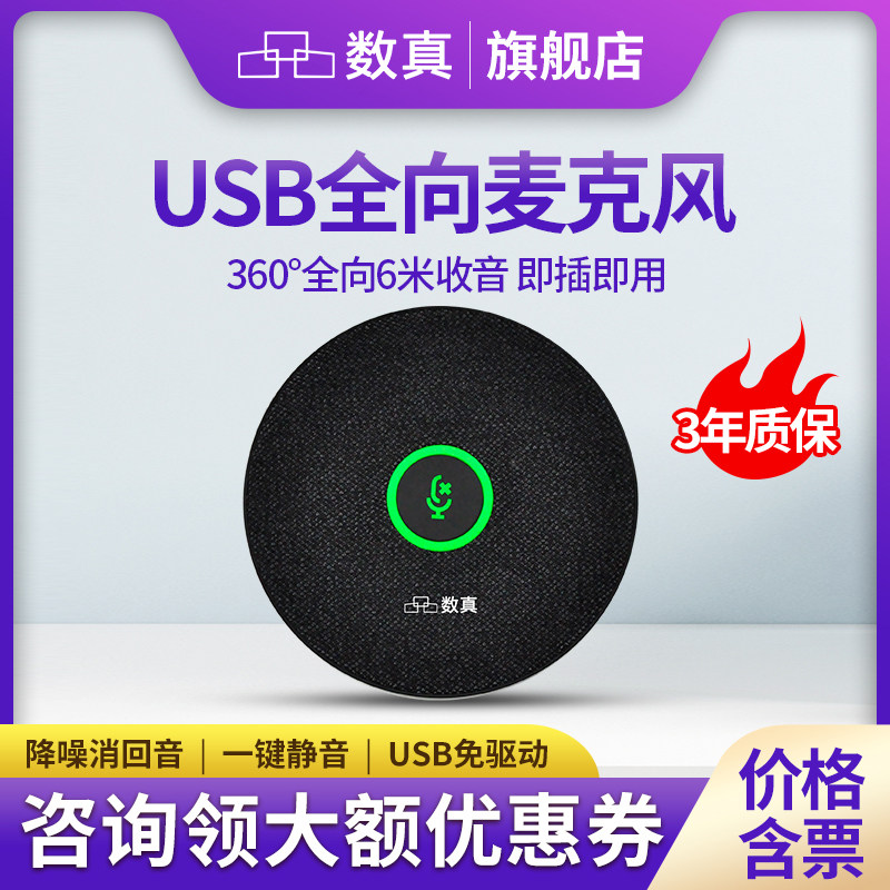 数真全向麦克风MA10 360°全向6米收音 USB有线 适用40~60㎡中小型会议室 兼容腾讯会议/钉钉等视频会议软件