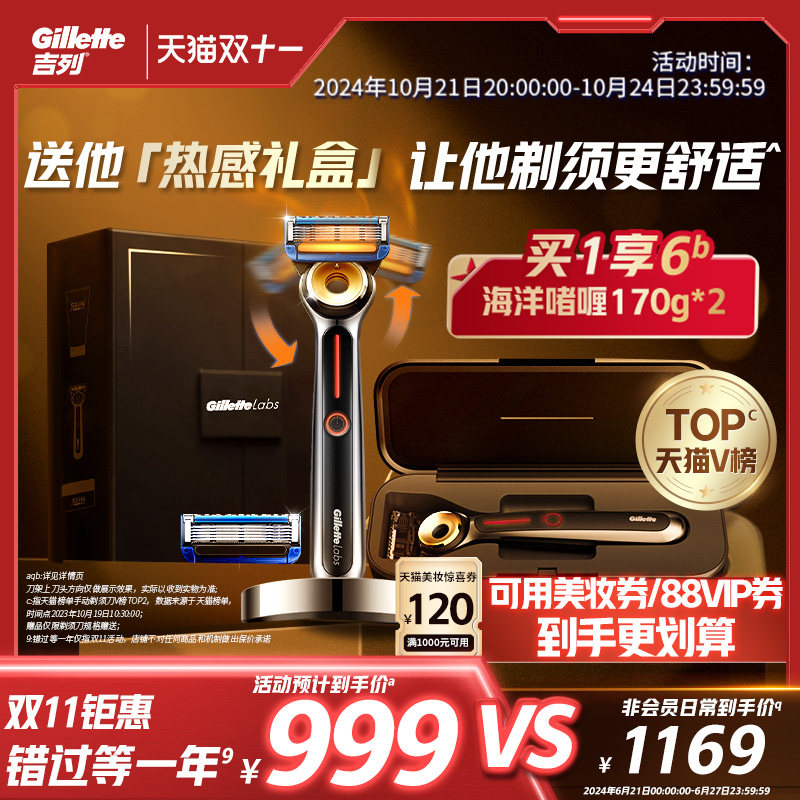 【双11立抢】吉列LABS热感剃须刀男士手动剃胡刀非吉利送男友礼盒