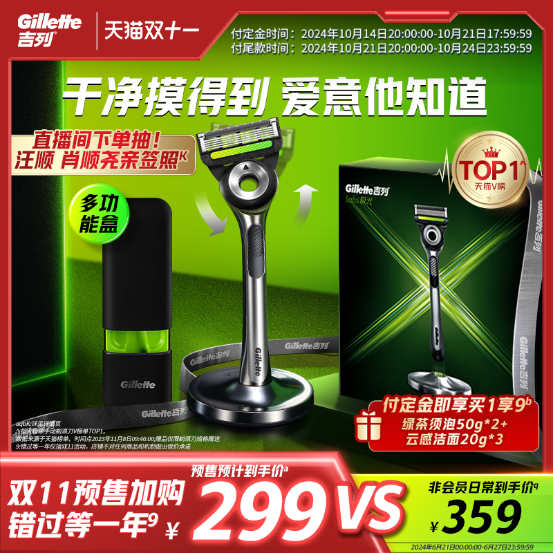 【晚8付定】吉列极光礼盒剃须刀男士手动刮胡刀刀头非吉利送男友