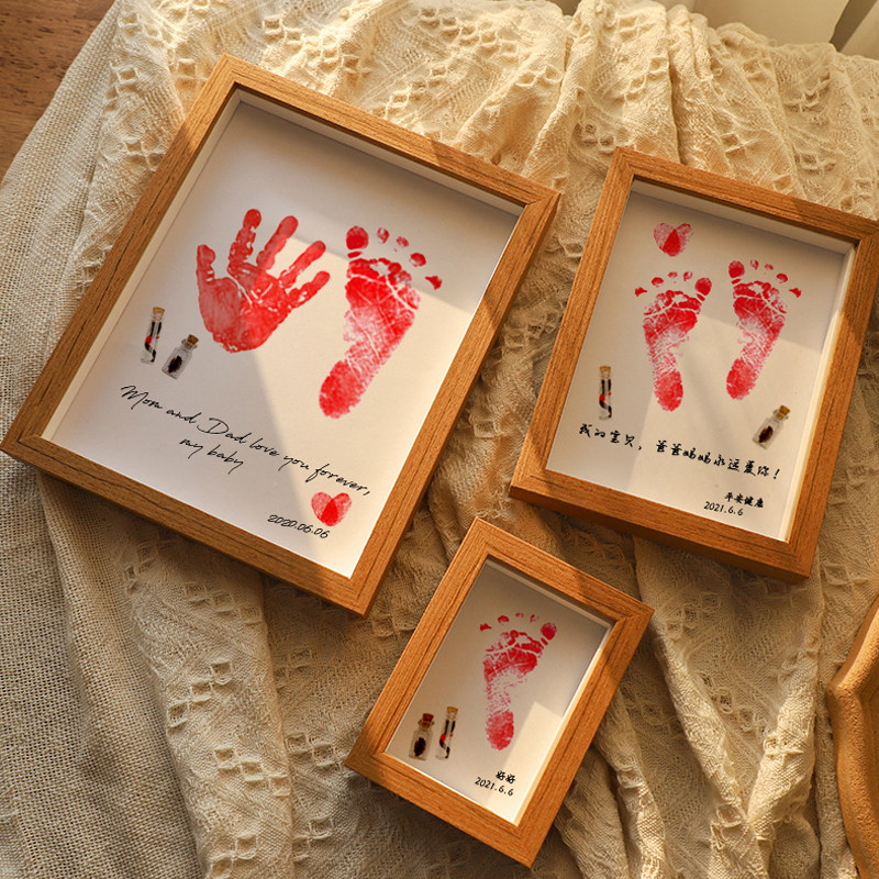 欧式简约风宝宝手脚印相框满月百天周岁足印新生儿胎发脐带保存瓶