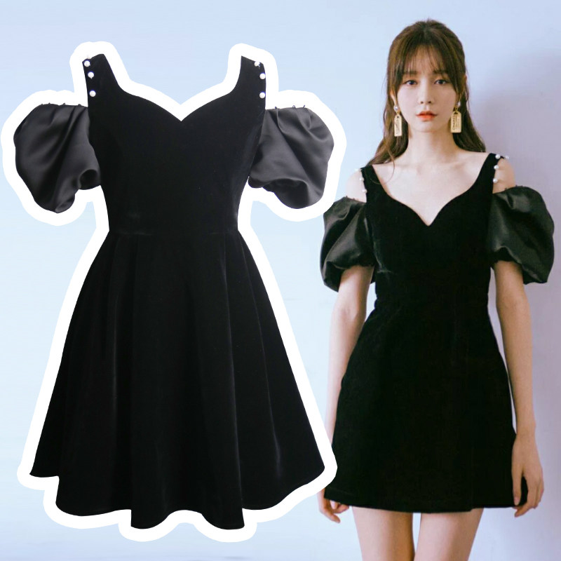 首页 > 未分类 > JUJU定制沈梦辰明星同款气质礼服裙丝绒V领小黑裙短裙年会连衣裙