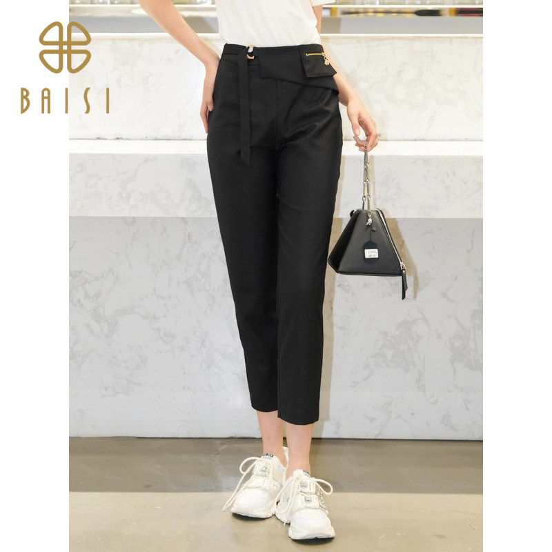 百丝率性姐姐随意感显瘦长裤2024夏季新品通勤穿搭黑色休闲哈伦裤