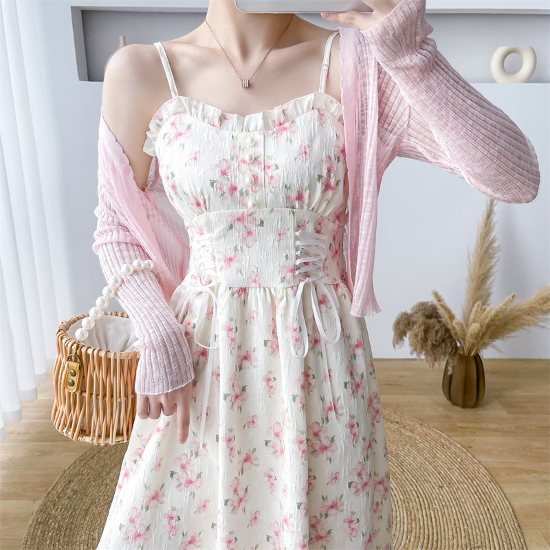 夏季短袖新款雪纺仙气姐妹连衣裙小清新吊带裙披肩裙子套装裙女