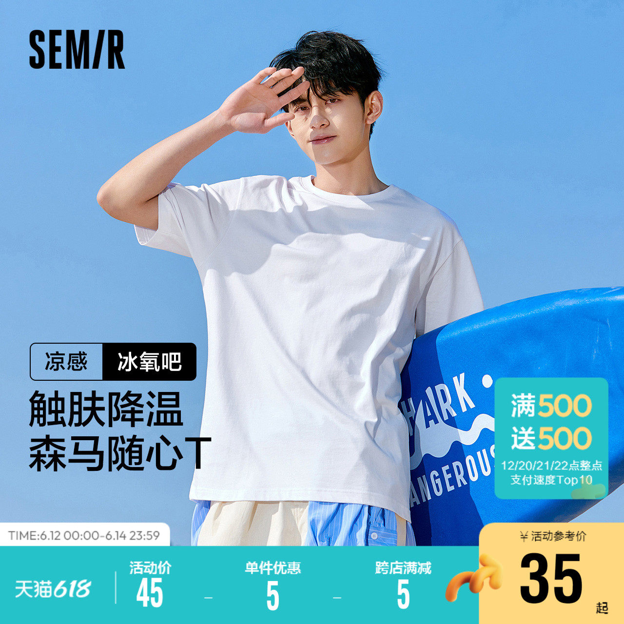 森马短袖男t恤夏季纯棉半袖情侣体恤男生纯白圆领透气修身休闲正