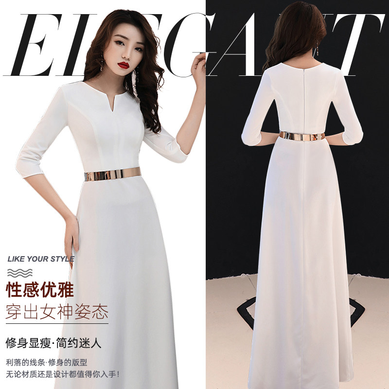 首页 > 未分类 > 白色晚礼服2024新款女长裙长袖演出服姐妹裙聚会修身主持礼仪年会