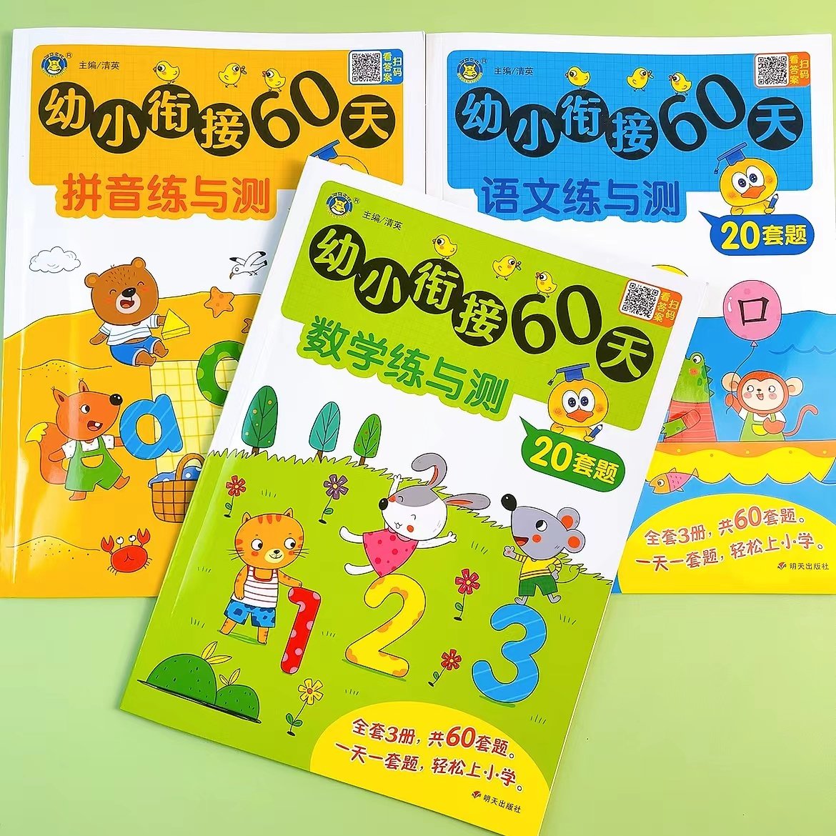 老师推荐全套3册一日一练幼小衔接60天练与测拼音数学幼儿园大班升一年级学前训练学前班人教版语文练习题幼升小入学准备练习册