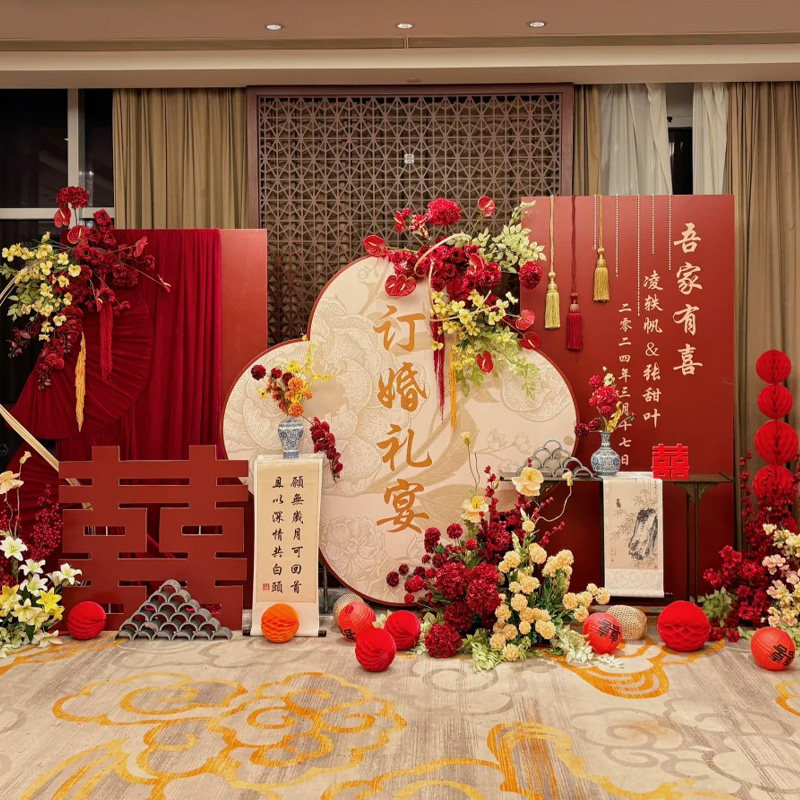 订婚宴布置装饰场景新中式2024背景墙仪式感大气kt板摆件用品套餐