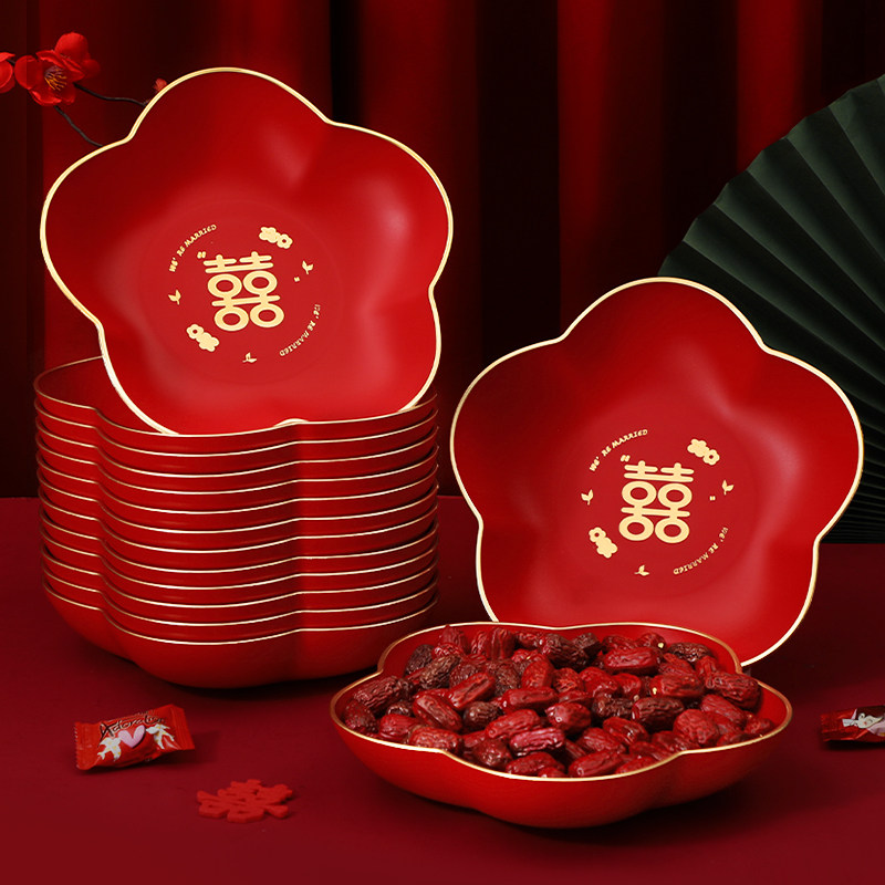 结婚果盘客厅专用红色喜糖盘婚礼用的喜盘子订婚网红干果盘摆件