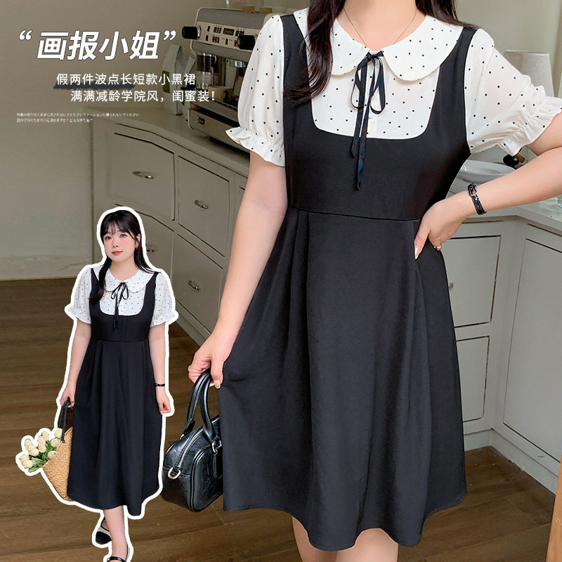装波点姐妹款小黑裙2024夏季新款遮肉长短款连衣裙250413孕妇胖妈