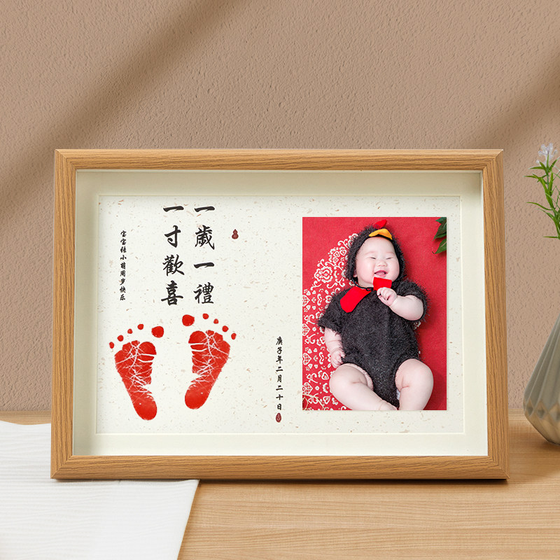 周岁手足印画兔宝宝新生婴儿满月百天脚印纪念仪式感一岁一礼相框