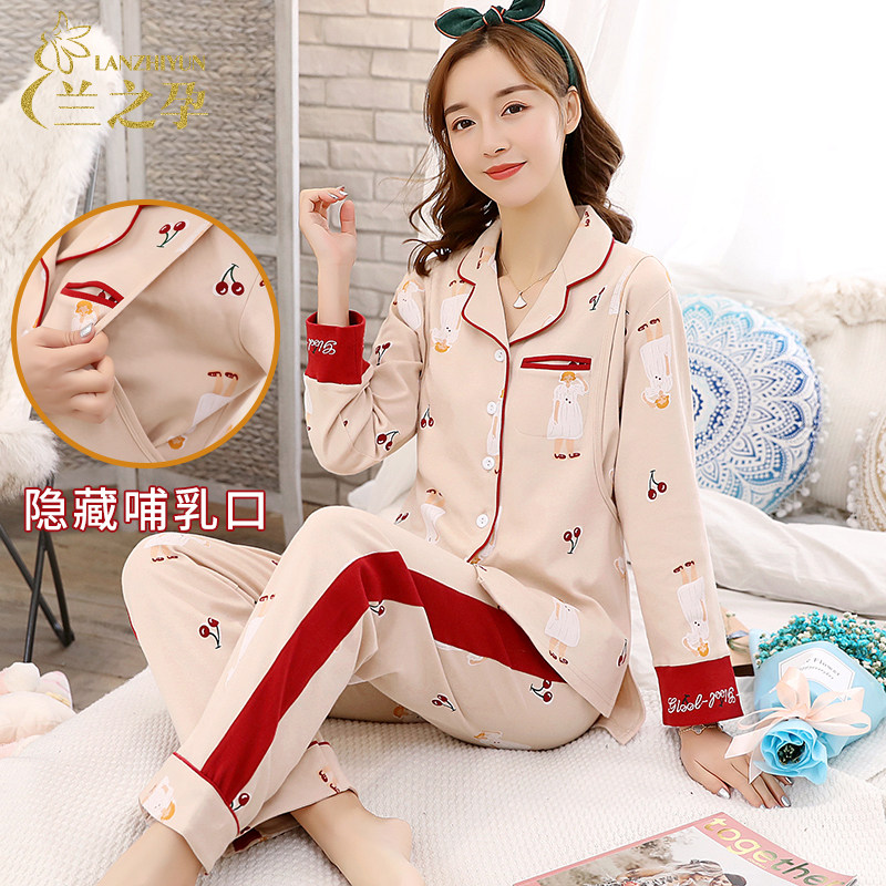 月子服春秋纯棉产后孕妇睡衣哺乳薄款待产喂奶产妇怀孕期夏季家居